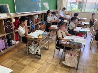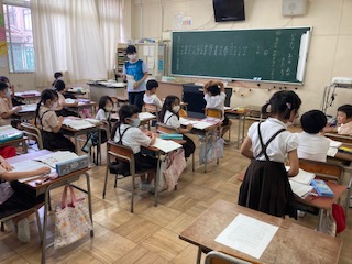 詩の学習をしています。「いろんな音の雨」「空にぐうんと手をのばせ」の二つの詩です。