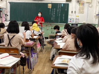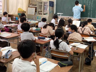 「一つの花」の学習に入りました。時代背景や難しい言葉などを聞いたり調べたりしながら読み取っていきます。