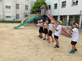最後に水鉄砲で、誰が一番遠くまでとばせるか競争しました。
