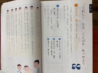 ノートにたくさん書きました。どんなときにうれしくなるかも書き、発表しました。