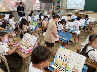 「じゃんけん列車」や鍵盤ハーモニカでの指の使い方などを練習しました。