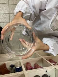 ザリガニの赤ちゃんです!卵からたくさん孵りました。一匹ずつ容器に入れて、大切に育てます。