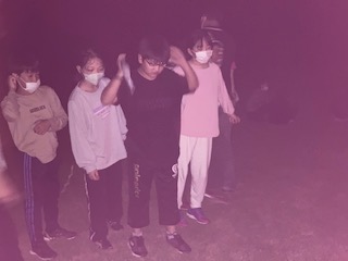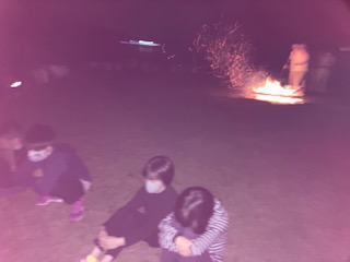 ゲームも終わり、暗闇にじっと目を凝らして3分間心の中で数え、心を落ち着かせました。宿舎の方が、ファイヤーの残り火で文字を書いてくださいました。何に見えますか?