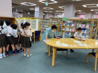 カウンターで本を借りました。学校で借りる時よりも速く、びっくりしました。
