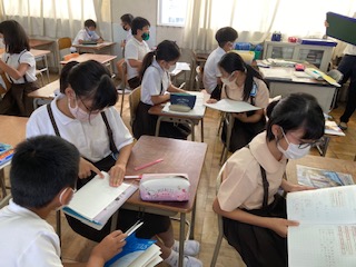 通分の学習を思い出してそれを使ってやる子、図を書いて考える子などなど。自分の考えを近くの友達と交流しました。