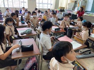 ソ・ラ・シの音だけの曲「地平線」を練習しています。一人ずつテストもしました。1学期から始めたリコーダー奏ですが、ずいぶん上手になってきました。