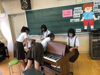 「マルセリーノの歌」の簡単な合奏に挑戦しています。全員が鉄琴とオルガンの旋律を経験しました。