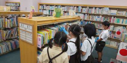 今日は2組が見学に行きました。旭図書館の施設内の工夫、楽しい企画なども見学をすることでわかりました。一人一冊ずつ借りて帰りました。旭図書館の皆様、お忙しい中時間を作っていただき、本当にありがとうございました。
