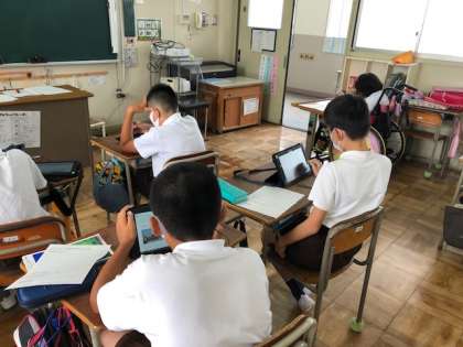 5時間目には、タブレットを使って、自分の主張したい行き先を調べ始めました。
