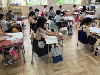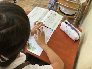 硬筆の練習をしています。漢字の筆順は、文字を美しく書くためにあります。文字全体のバランスなども考えてゆっくりていねいに書きました。