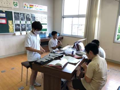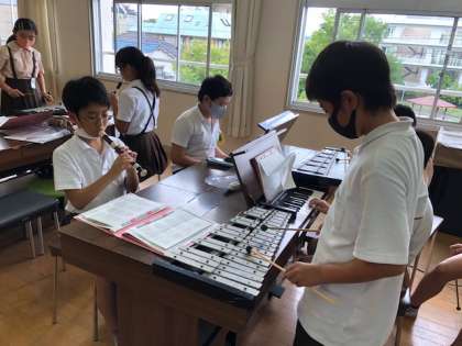 「マルセリーノの歌」の合奏に取り組んでいます。難しいパートの人も少しずつ慣れてきました。鉄きんはマレットの硬さや鳴らし方によって響きが変わることを耳で確かめました。