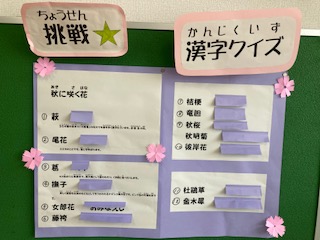 図書支援員のI先生からの漢字クイズです。子ども達は楽しみにしています。