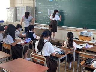 平均の学習です。「ならす」という言葉がピンとこないこもいました。ジュースの問題で、みんな同じにするにはどうしたら良いか、考えました。