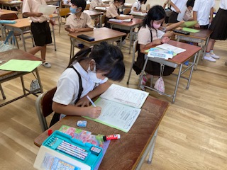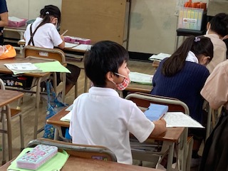 プリントができたらどんどん自分のペースで進めていきます。提出したノートに間違いがあれば、直して再提出もしています。朝の15分という短い時間ですが、有効にかつようしています。