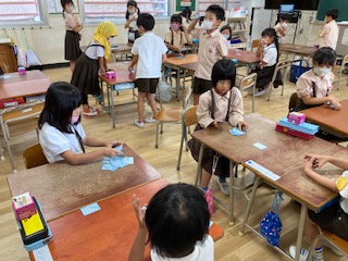 百人一首をしました。まだまだ難しいのですが、新しいことに挑戦したいという気持ちがとても強い1年生です。