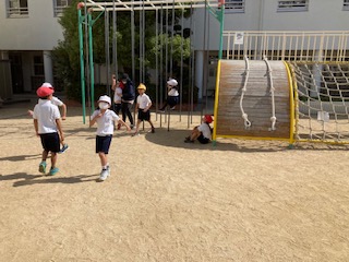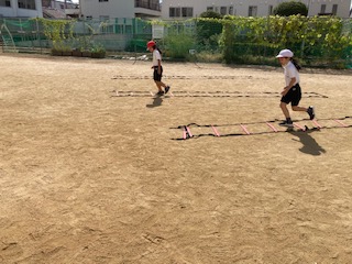 直線を走る・ラダーで足の運びをすばやくする・のぼり棒を何回も挑戦しました。