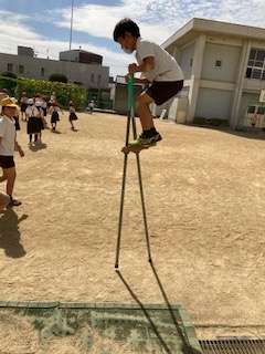 元気に遊んでいます。高い竹馬。とても上手でびっくりです!!