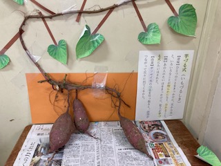 昨日のひまわりタイムでとれたサツマイモ。ひまわり教室前に「芋づる式」の説明がありました。実物を見ると言葉の意味がよくわかりますね。