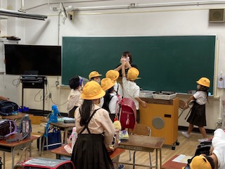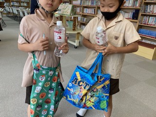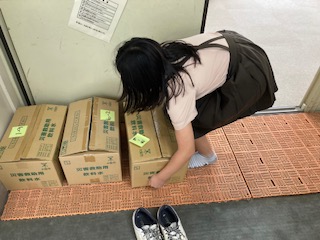 新しい飲料水が区役所から届きました。まだ賞味期限は切れていませんが、災害物資倉庫がいっぱいになるので、全校児童に一本ずつ配りました。配るのを4年生が手伝ってくれました。