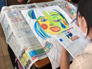 ピカソに倣って、顔を描きました。いかに概念を崩せるか。色や形を工夫しています。それぞれに多様な思いが入った面白い作品ができそうです。