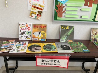 新しい本が入りました。生き物に関係する本です。虫のクイズもあります。