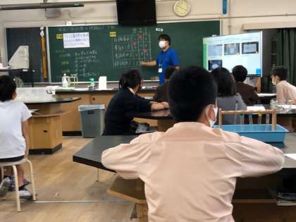 「水溶液の仲間分け」の実験を行いました。リトマス紙が酸性、中性、アルカリ性の物質に色の変化が見られるということを学びました。今回は、食塩水、レモン汁、石灰水、そして雨水の4つの物質で実験しました。