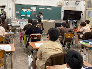 栄養教諭のF先生の指導で、朝ごはんについて考えました。