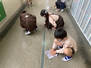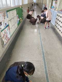 就学時健康診断前の短い時間に一生懸命掃除をしました。職員室前の廊下に黒い汚れが。雑巾でキュッキュッと拭いたら、とてもきれいになりました!ありがとう!!