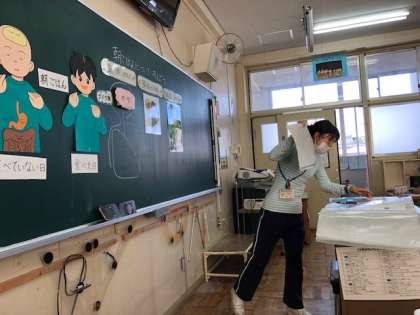 6年の栄養指導では、朝ごはんの大切さについて考えました。