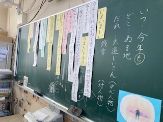 第一ばめんのうなぎばり作戦、それにかける大造じいさんの思いを考えました。この教材には、心情の描写がたくさん出てきます。とりわけ、情景の描写から人物の気持ちが読み取れることを確認しながら進めました。