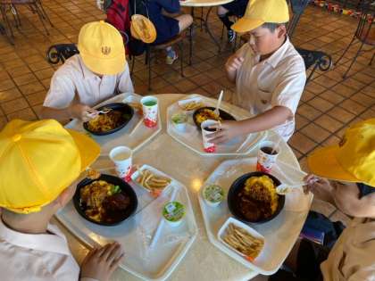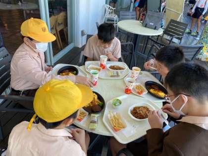 入園時に配付したミールクーポンを使って事前に決めたレストランに行っています。