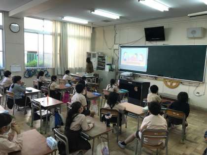 映像を使いながら、体を動かしたり、歌を歌ったり、楽しく英語の学習をしました。