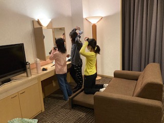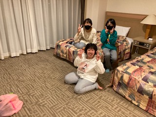お風呂にも入り、部屋でくつろいでいます。