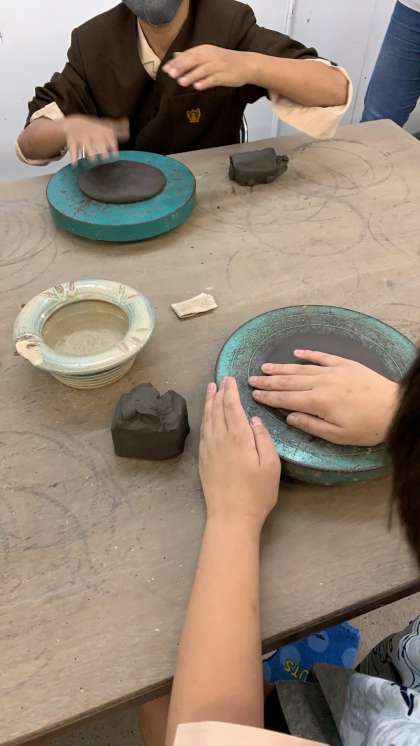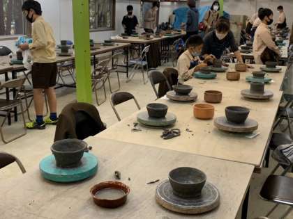 陶芸の難しい作業工程は、スタッフのみなさんが親切に教えてくださいました。