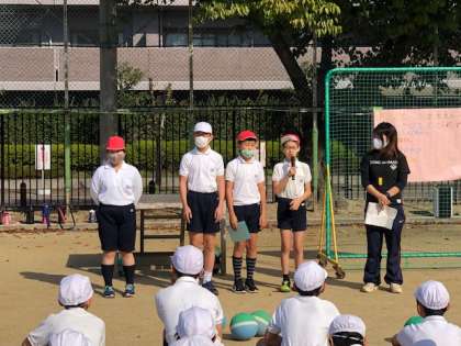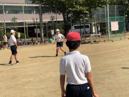 ドッジボール交流会を行いました。男子は5、6年の混合チーム、女子は各学年別チームで交流しました。