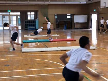 それぞれの技のポイントを説明し、着地の姿勢へ意識を向けるよう指導しました。