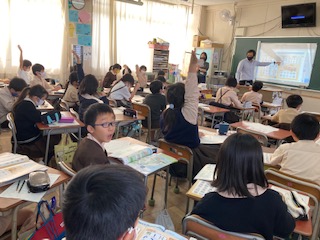 担任が授業を進めていますが、発音やコミュニケーションのところでは、ケビン先生にしっかり教えてもらっています。積極的に声を出しています。
