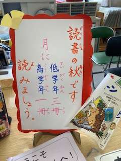 カウンターにこんな掲示がしてあります。大宮小学校の読書目標です。