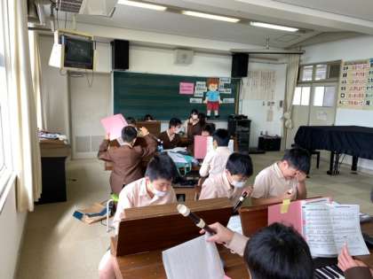 「カノン」の合奏に向けて、リコーダーとオルガンに分かれて、演奏しています。