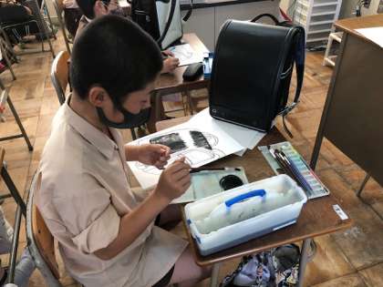 黒や赤一色で塗ってしまうのではなく、光の加減や微妙なキズなども意識しながら描いています。