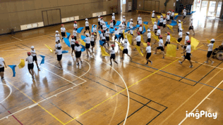 運動会に向けての練習です。2曲目はフラッグを使った演技です。