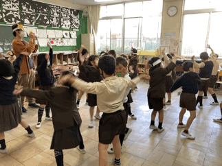 係の児童が、10月の誕生日会を兼ねたお楽しみ会を計画しました。みんなで「パプリカ」を踊りました。