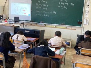 全体の重さを計算で求めました。1tなど、大きい重さの単位について学習しました。