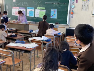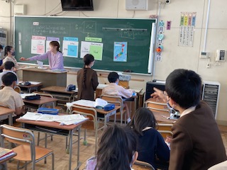 広い面積を求めは問題を解いていきました。分からないところは友達同士教え合いをしています。