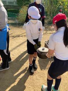 ゆっくり慎重に、自分の班のテーブルまで鍋を運びました。ご飯とカレーを自分でよそいました。