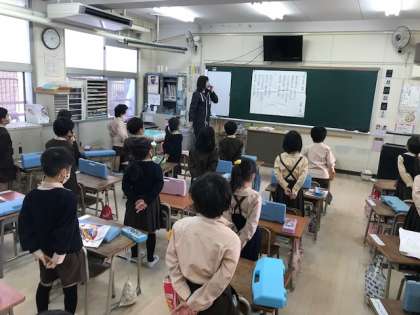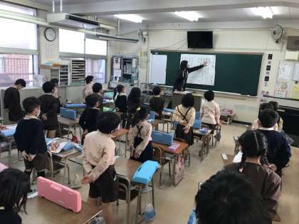 大宮小学校の校歌を練習し、教室中に校歌が響きました。これから運動会など、様々な学校行事で歌います。しっかりと覚えよう。