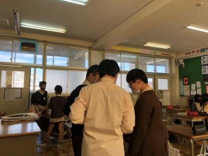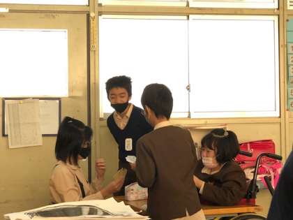 休み時間の教室の様子です。トランプやUNOなどのカードゲームをして過ごす子どもが多いです。