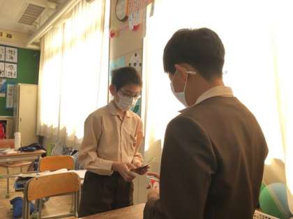 昼休みは、男子の間でバスケットボールが流行っていて、外で遊ぶ様子も見られます。