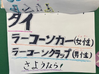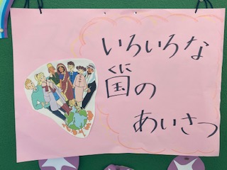 代表委員会がこの間の朝会で発表したいろいろなあいさつの紹介が職員室前に掲示してあります。