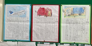 国語で学習した「いろいろなふね」の発展として、のりもの図鑑を作っています。教室に掲示しています。明日からの学校公開です。お見逃しなく!